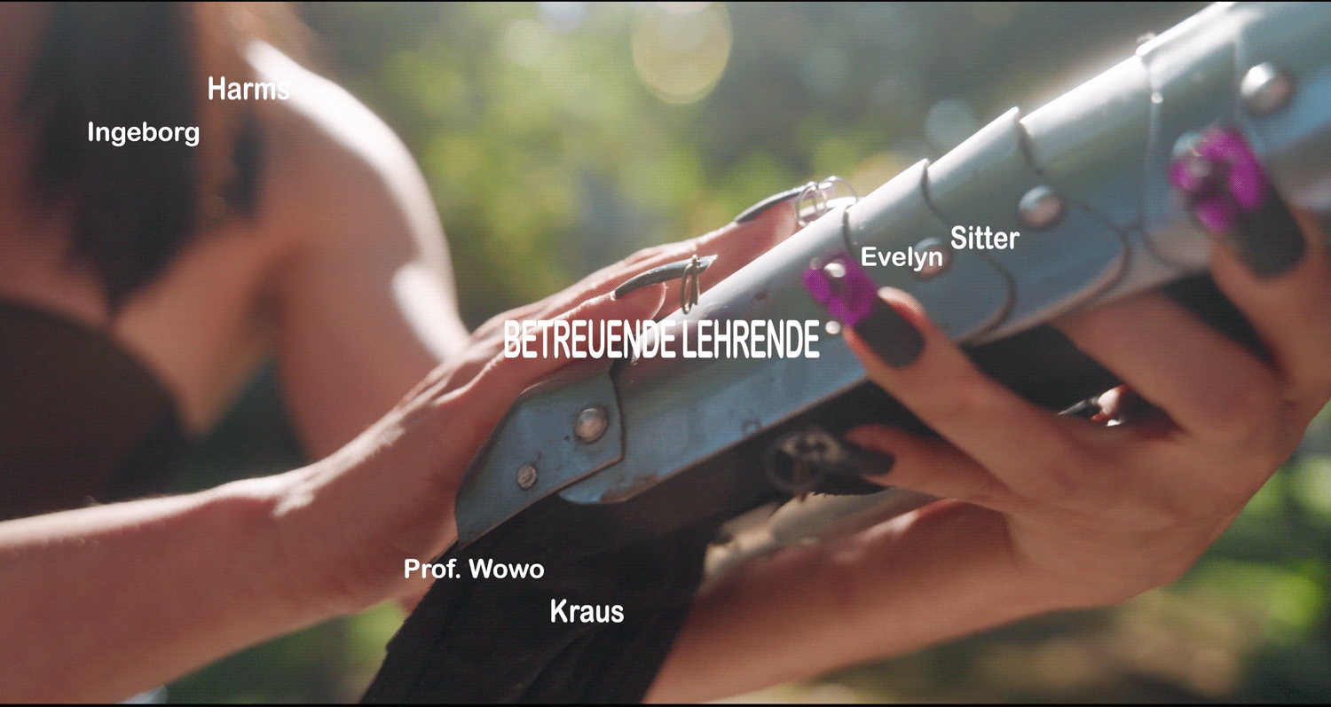 Film titles and graphic design for the film project "Schau 21–FREEWHEELING". During the exhibition, the Bachelor's and Master's graduates from 2019-2021 of the Institute for Experimental Clothing and Textile Design showcased their works in collaboration with the singing class of Prof. Deborah York from the University of the Arts Berlin and zeitgebilde Filmproduktion UG in a performative screening at the concert hall of the University of the Arts Berlin. The main focus of the film was to highlight the underrepresentation of all the individuals involved in fashion projects. A significant portion of the film consisted of credits, where each contributor to the project was treated in an individual manner and featured as a moving, animated object at the center. Each collection had its own exceptional logo that reflected the essence of the collection. Featuring final projects by Katharina Achterkamp, Ronja Biggemann, Nina Birri, Johanna Braun, Alessandro Gentile, Jasmin Halama, Paula Keilholz, Manfred Elias Knorr, Louis Krüger, Lina Lau, Lisa Oberländer, Smed Wagner, Katharina Spitz.